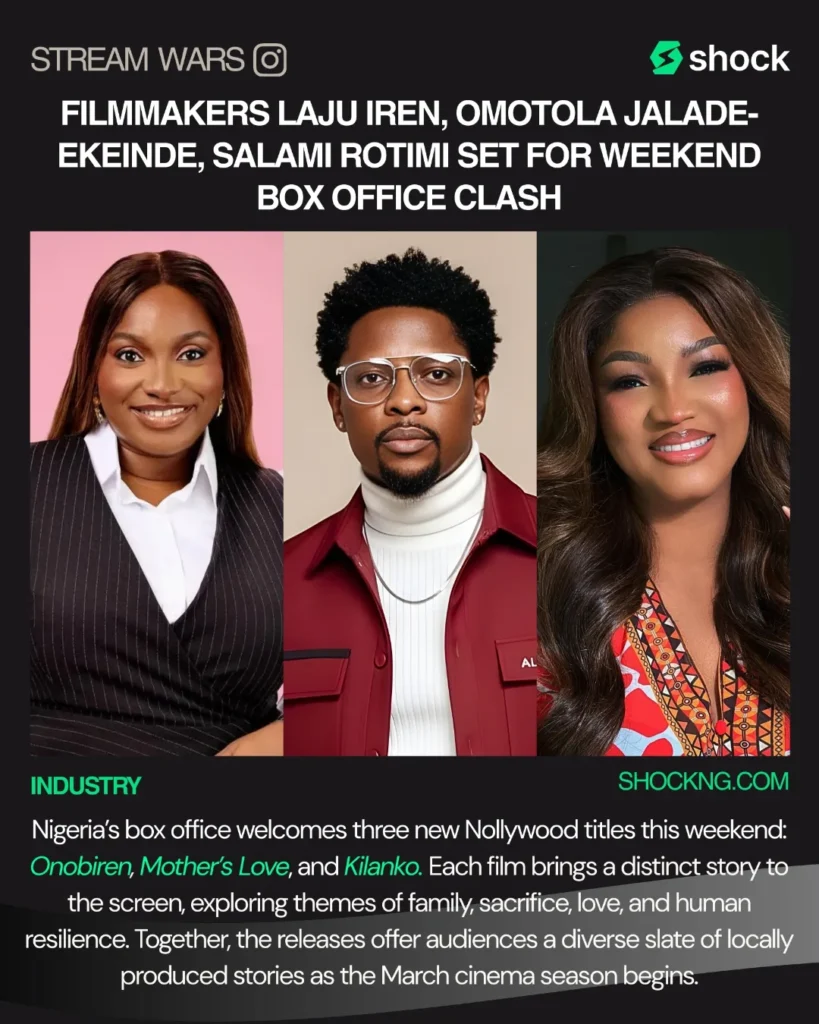 This weekend, Nigerian cinemas feature a lineup of three distinct Nollywood films: Onobiren by Laju Iren, Mother’s Love by Omotola Jalade-Ekeinde, and Kilanko by Rotimi Salami, each drawing on themes of personal strength, family bonds, and cultural identity to attract varied audiences.