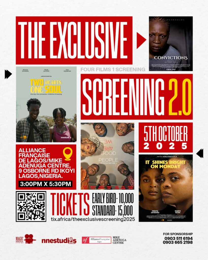 The Exclusive Screening 2.0 will hold on October 5th, 2025, at Alliance Française – Mike Adenuga Centre, Ikoyi, Lagos.