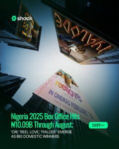 From January to August 2025, Nollywood’s top 10 films generated ₦2.1 billion, with “Ori The Rebirth” leading a diverse lineup that showcased the industry’s growing box office sophistication and audience loyalty.